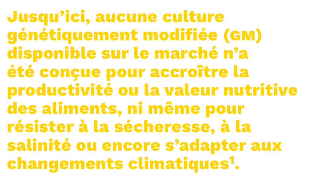 Pourrions-nous nous passer des OGM pour nourrir le monde? Oui pour l’instant. Mais avec une population en croissance rapide et des changements climatiques radicaux en vue la réponse à cette question pourrait bien changer.. De toute façon, la question fondamentale à se poser est la suivante : pourquoi devrions-nous renoncer à cette technologie qui permet et permettra une production agricole plus écologique, plus rentable, plus résiliente et plus nutritive? Il ne s’agit pas de savoir si on peut ou non nourrir l’humanité sans OGM, mais plutôt si nous pourrions mieux la nourrir tout en réduisant notre impact sur l’environnement. Les OGM sont des outils. Comment voulons-nous les utiliser ? Voilà la vraie discussion à avoir.