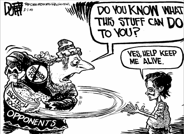 Il est facile de comprendre pourquoi les OGM sont un sujet très sensible : la nouveauté fait peur et cette réaction est bien compréhensible. Cependant persister à se réfugier dans des croyances invalidées par les données actuelles ou recourir à des contorsions intellectuelles pour éviter de remettre en question les fondements même de ses peurs est moins excusable. Vrai, une partie de l’industrie a tendance à exagérer les bénéfices éventuels des OGM et à imputer aux anti-OGM, la responsabilité de la faim dans le monde. Ce qui est également grotesque. Cependant, qui prétend vraiment que les OGM sont une solution mur-à-mur aux problèmes agricoles ou environnementaux ? Par contre, il est raisonnable d’avancer que cette technologie est un des outils essentiels à l’amélioration de l’efficacité et la durabilité de nos pratiques . Attardons-nous donc au premier mythe.