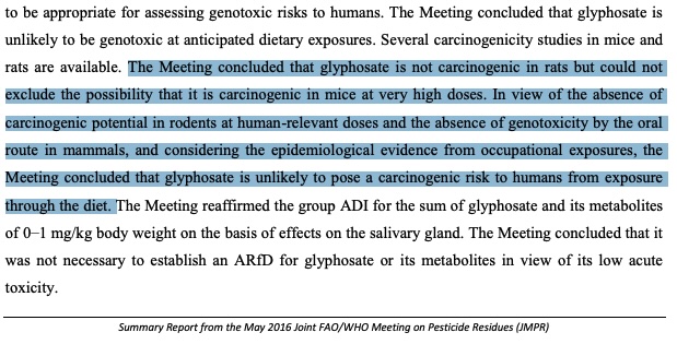 Pour rédiger cette revue, Monsanto part évidemment de la conclusion selon laquelle son produit ne présente pas de risque aux niveaux d’exposition autorisés. La revue narrative vise alors à expliquer comment l’entreprise est parvenue à cette conclusion, en mobilisant et en citant les études qu’elle juge pertinentes pour étayer sa position. Si une entreprise n’était pas raisonnablement certaine que le produit qu’elle cherche à homologuer ne pose pas de risque significatif, elle ne s’engagerait jamais dans un processus d’homologation qui lui coûte des centaines de millions de dollars. Elle le ferait en sachant que la moindre étude sérieuse arrivant à des conclusions contraires mettrait immédiatement en péril l’autorisation de mise en marché de son produit.